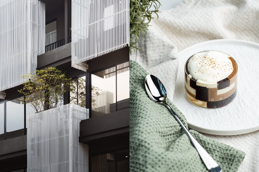 ดีไซน์ Facade และ Blocks ทั้งสีขาว น้ำตาล ดำที่เป็นเอกลักษณ์ของโครงการ ถูกนำมาตีความใหม่โดยเชฟฟ้าให้กลายเป็นเมนูของหวานที่บ่งบอกตัวตนของโครงการได้เป็นอย่างดี นั่นคือ