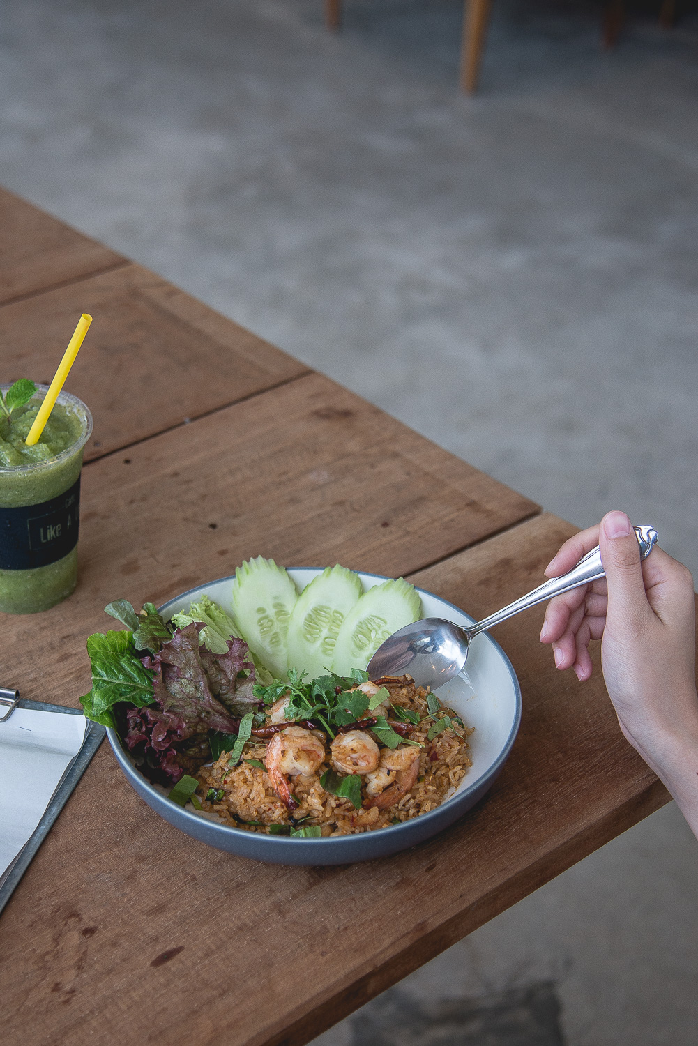 ส่วนใครกำลังมองหาจานอิ่มท้อง ทางร้านแนะนำ ข้าวผัดต้มยำกุ้ง (150 บาท) ข้าวผัดกับเครื่องต้มยำไทย มีรสชาติแซ่บถึงเครื่อง โรยหน้าด้วยใบมะกรูด พริกแห้ง ตามด้วยกุ้ง