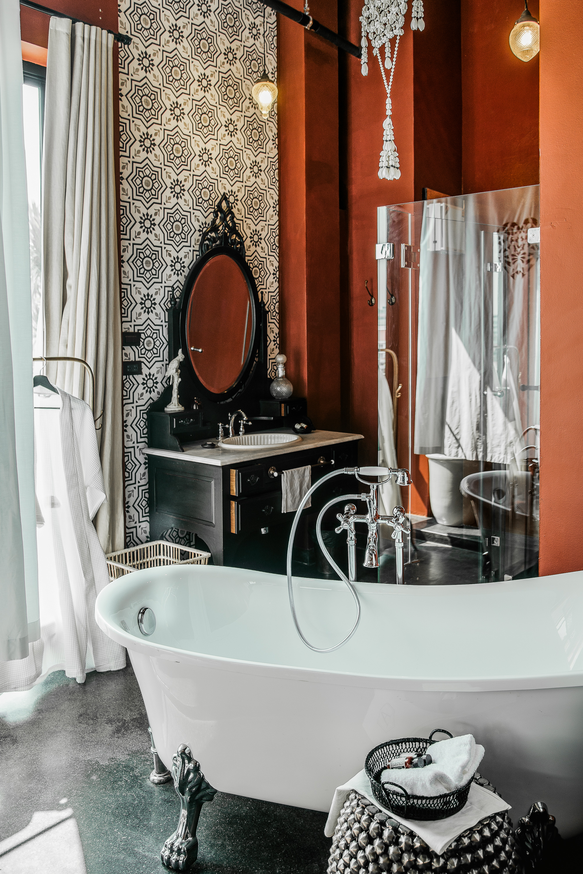 สัมผัสมนต์เสน่ห์วันวานในย่านธนบุรีที่ AMDAENG Riverside Boutique Hotel บูทีคโฮเทลอีกหนึ่งแห่งที่ตั้งอยู่ริมแม่น้ำเจ้าพระยาเขตคลองสาน สร้างความประทับใจแรกเห็นด้วยความโดดเด่นของตัวอาคารสีแดงชาดทั้งหลัง สถาปัตยกรรมแบบย้อนยุคสมัยรัชกาลที่ 5 ที่มีการตกแต่งดีไซน์ภายในสไตล์ไทยประยุกต์ ผสมผสานความเป็นไทย จีน และตะวันตกเข้าไว้ด้วยกัน เพื่อสร้างเอกลักษณ์ให้เป็นที่น่าจดจำ สอดคล้องกับเรื่องราวเบื้องหลัง ซึ่งเป็นที่มาของชื่อโรงแรมแห่งนี้