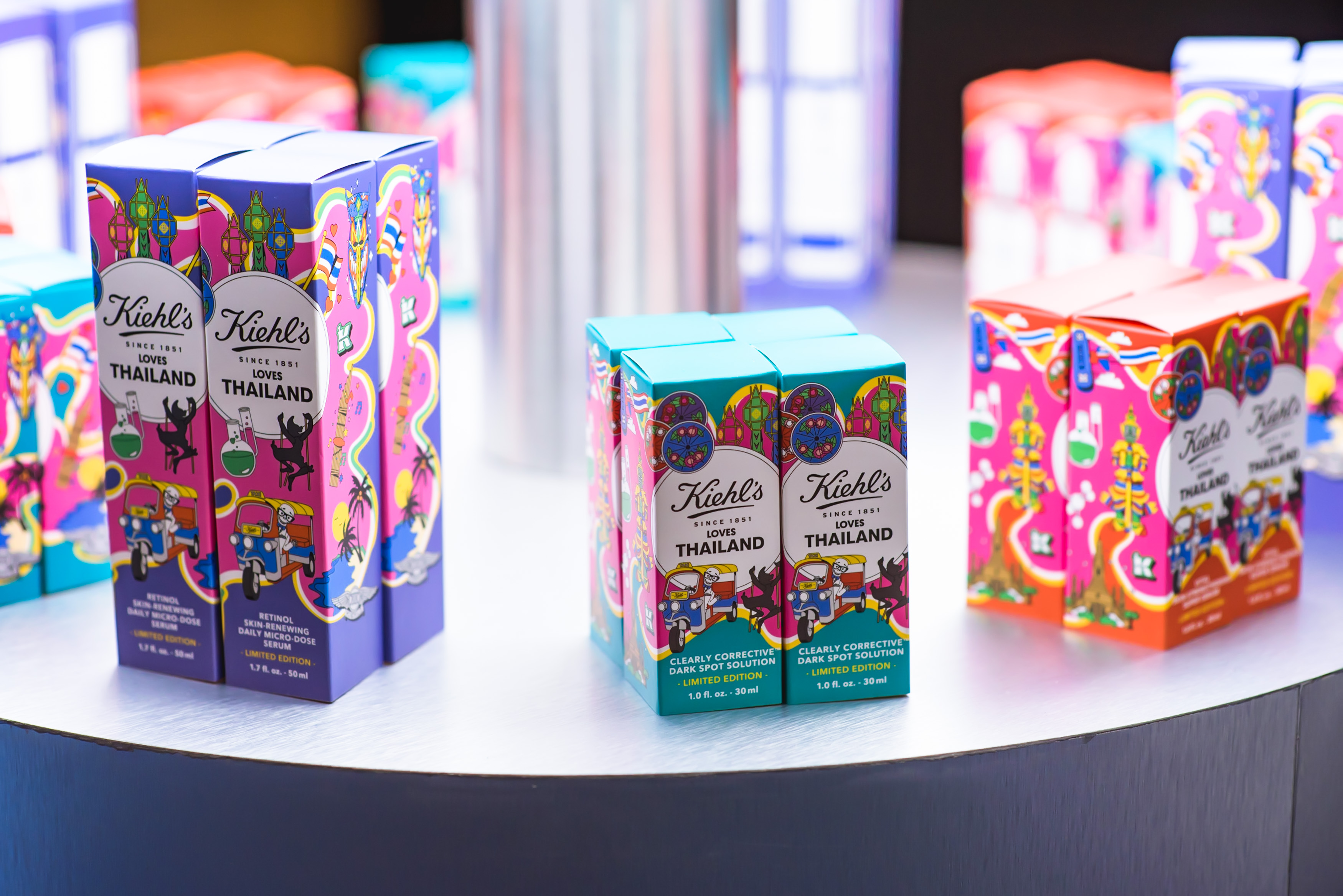 ซึ่งลวดลายอันแสนน่ารักถูกนำมาประดับประดาบนผลิตภัณฑ์ขายดีครองใจแฟนคีลส์ตลอดกาล ไม่ว่าจะเป็น คาเลนดูลา โทนเนอร์, ดาร์ก สปอท เซรั่ม, อัลตร้า เฟเชียล ครีม, ซูเปอร์ เซรั่ม และผลิตภัณฑ์ใหม่ล่าสุด เรตินอล ไมโคร โดส เซรั่ม โดยไอเดียการออกแบบจาก LINDA BARITSKI ศิลปินอิลลัสเตรเตอร์ชื่อดังจากลอนดอน ด้วยพลังการออกแบบที่ล้นเหลือ มองโลกในแง่ดี รวมถึงความสดใส ทำให้ฝีไม้ลายมือของเธอแตกต่างศิลปินคนอื่นๆ ที่แลดูมีชีวิตชีวา ในครั้งนี้เธอได้สร้างสรรค์ลวดลายสุดน่ารัก ผสมผสานกับการใช้สีสันที่ฉูดฉาด Kaleidoscopic Pattern ผ่านคอนเซปต์ที่ผสานเอกลักษณ์ของคีลส์เข้ากับอัตลักษณ์ท้องถิ่นของไทยในแต่ละภาคไว้ อาทิ ภาคเหนือ – ร่มบ่อสร้าง, โคมยี่เป็ง ภาคอีสาน – หน้ากากผีตาโขน, แคนไม้ไผ่ ภาคกลาง – ยักษ์, วัดอรุณราชวณาราม, รถตุ๊กตุ๊ก และภาคใต้ – หุ่นเชิดหนังตะลุง, ความงดงามของทะเลไทย พบกับกิจกรรมสุดพิเศษมากมายภายในงานอีเวนต์ และเต็มไปด้วย Mission มากมายที่จะมอบความสนุกให้ทุกคน อาทิ รับผลิตภัณฑ์ขนาดทดลองที่ตู้ Pop Up Sampling ตามนโยบาย TRY BEFORE YOU BUY ลองก่อนค่อยซื้อ, มุมถ่ายรูปสุดน่ารักที่มาพร้อมกับ Kiehl’s Iconic Magnet ที่ออกแบบจากอัตลักษณ์และแลนด์มาร์คของแต่ละภาคที่จัดขึ้นเป็นพิเศษเฉพาะงานนี้ เพื่อแฟนคลีส์ให้ทุกคนแชะแอนด์แชร์รูปสวย ๆ คอนเทนต์ปัง ๆ ลงโชเซียล
