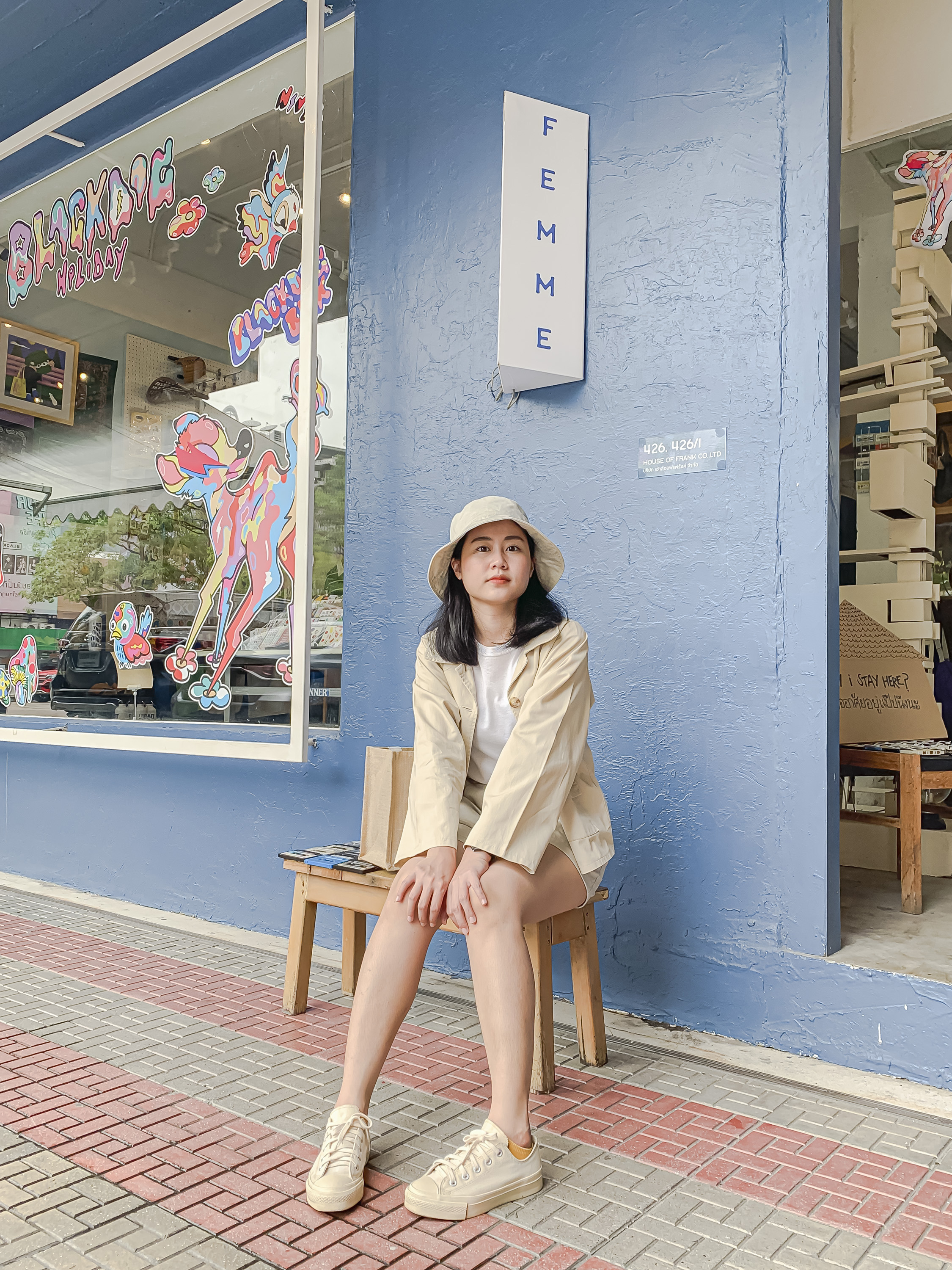 ตามมาด้วยร้าน Daddy and The Muscle Academy แบรนด์เสื้อผ้าสไตล์วินเทจป๊อปแสบซน ที่เชื่อว่าคนที่ผ่านไปผ่านมาแถว Siam Square ซอย 2 จะต้องสะดุดตากับหน้าร้านสีฟ้าสดใสที่มีสายรุ้งพาดยาวด้านหน้าประตู ชวนให้เราผลักประตูร้านเข้าไปบุกอาณาจักร Daddy ที่มีมุมชิค ๆ รออยู่ด้านใน ทันทีที่เปิดประตูเข้าไปจะพบกับสีสันความสดใส พร้อมสารพัดของตกแต่งกระจุกกระจิกสุดน่ารัก ทั้งเสื้อผ้า เครื่องประดับ กระเป๋า และรองเท้า ที่ให้กลิ่นอายวินเทจยุค 90s อีกทั้งยังมีของตกแต่งที่ดีต่อใจอย่างสมุด สติ๊กเกอร์ เคสโทรศัพท์ และอื่น ๆ อีกมากมาย เมื่อผสมผสานเข้ากับการตกแต่งร้าน ทำให้เรารู้สึกเหมือนหลุดเข้าไปในโลกของการ์ตูน ที่นอกจากคุณจะได้เพลิดเพลินไปกับของน่ารัก ๆ แล้ว ยังได้ภาพถ่ายสุดเก๋กลับบ้านอีกด้วย