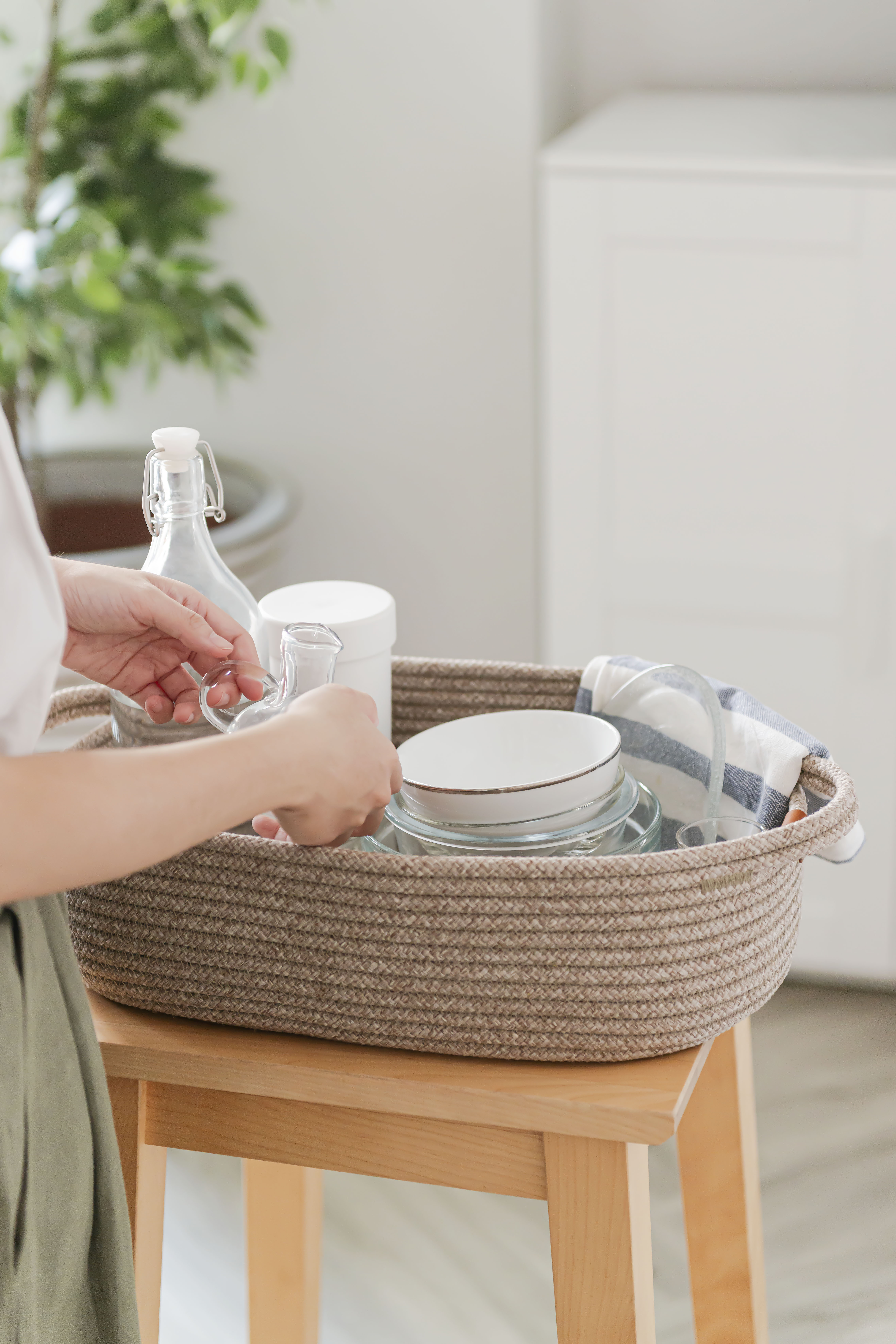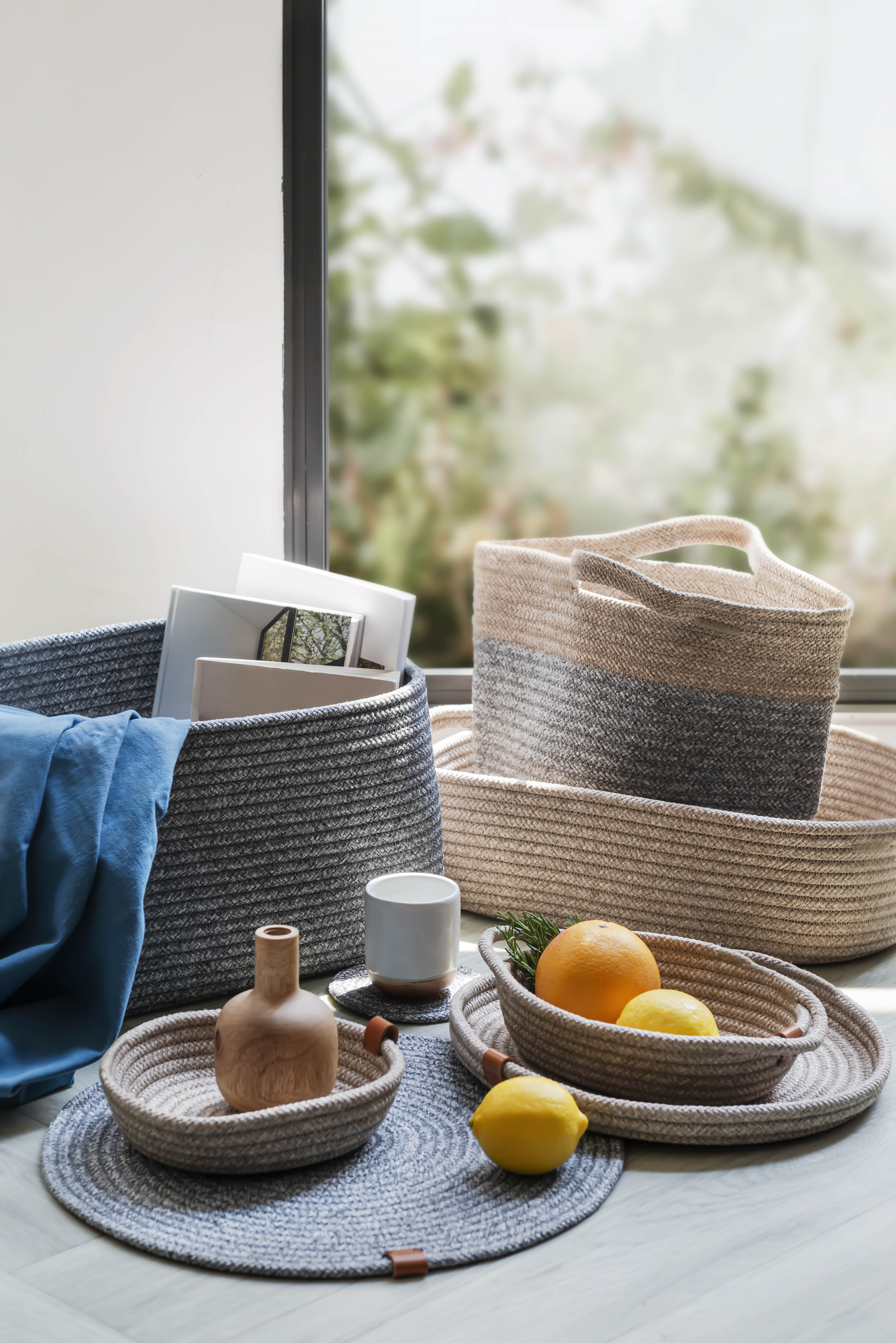 หากเป็นสายนักสะสมหรือต้องการพื้นที่ใส่ของไลฟ์สไตล์ส่วนตัว ‘Flatpeach Basket - Beige (1,650 บาท)’ เป็นตะกร้าใส่ของอเนกประสงค์อีกแบบที่ตอบโจทย์ได้ดีไม่แพ้กัน เพราะนอกจากจะจุของใช้ได้เยอะแล้ว ยังถูกดีไซน์มาให้มีหูจับถนัดมือทั้ง 2 ข้าง ทำให้สามารถเคลื่อนย้ายได้สะดวกสบายอีกด้วย หรือหากมีพร็อบในบ้านค่อนข้างเยอะ ไม่ว่าจะเป็นเสื้อผ้า, หนังสือ, ผลิตภัณฑ์ข้าวของเครื่องใช้อื่น ๆ ในชีวิตประจำวันมากมาย ซึ่งคุณต้องการจัดเก็บให้เป็นหมวดหมู่มากขึ้น ‘Jane Storage Basket - Grey (2,200 บาท)’ ตะกร้าอเนกประสงค์ขนาดใหญ่ชิ้นนี้จะช่วยให้การจัดเก็บเป็นเรื่องที่ง่ายสำหรับคุณ มาพร้อมดีไซน์ที่เรียบแต่ทว่าคลาสสิก เสริมการใช้งานควบคู่ไปกับการแต่งบ้าน เพราะด้วยโทนสีที่อบอุ่นละมุนตา จึงแมตช์เข้ากับมุมต่าง ๆ ของบ้านได้ ทำให้บรรยากาศภายในบ้านดูดีมีสไตล์มากยิ่งขึ้น