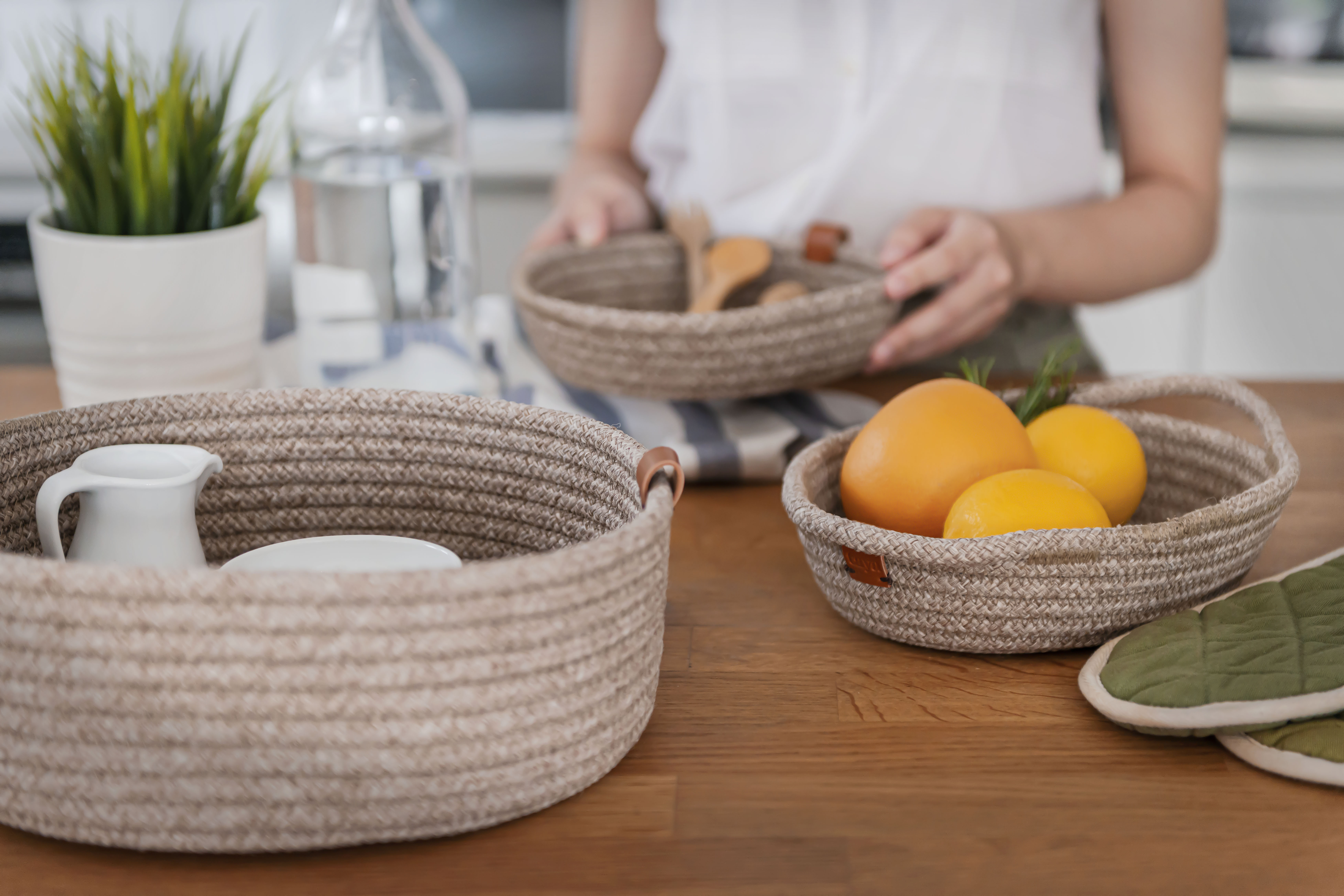 ตอบโจทย์คุณแม่บ้านพ่อบ้านที่กำลังมองหา storage solution เพื่อการใช้สอยด้านการจัดเก็บของที่มาพร้อมดีไซน์โดดเด่นเป็นเอกลักษณ์และสีสันที่เรียบหรูสบายตา ‘Super Nova Set - Beige (2,500 บาท)’ เซ็ตตะกร้าอเนกประสงค์ที่ประกอบด้วย Mini Nova (650 บาท), Mini Olive Basket (950 บาท), Clara Basket (1,300 บาท) ทั้งหมดนี้ถูกออกแบบมาเพื่อคุณแน่นอน เพราะไม่เพียงแต่ตอบโจทย์ด้านประโยชน์ใช้สอยในการเก็บของเท่านั้น แต่ยังรวมไปถึงดีไซน์ที่โดดเด่นเป็นเอกลักษณ์และสีสันที่เรียบหรูสบายตาอีกด้วย และสำหรับเซ็ตตะกร้าเก็บของอเนกประสงค์ Supernova สุดคุ้มนี้ ก็ถูกดีไซน์มาสำหรับการใช้งานที่หลากหลาย ไม่ว่าจะ indoor หรือ outdoor ก็สามารถปรับใช้ได้ตามความชอบ พ่วงด้วยคุณสมบัติกันน้ำและความแข็งแรงทนทานของวัสดุที่ทางแบรนด์เลือกใช้ ไม่ว่าจะหยิบมาใช้รูปแบบไหน ใส่ผลไม้ ใส่ข้าวของเครื่องใช้ในชีวิตประจำวัน หรือจัดวางไว้มุมไหนของบ้านก็มั่นใจได้เลยว่า Supernova เข้ากับทุก ๆ โซนของบ้านได้อย่างลงตัว