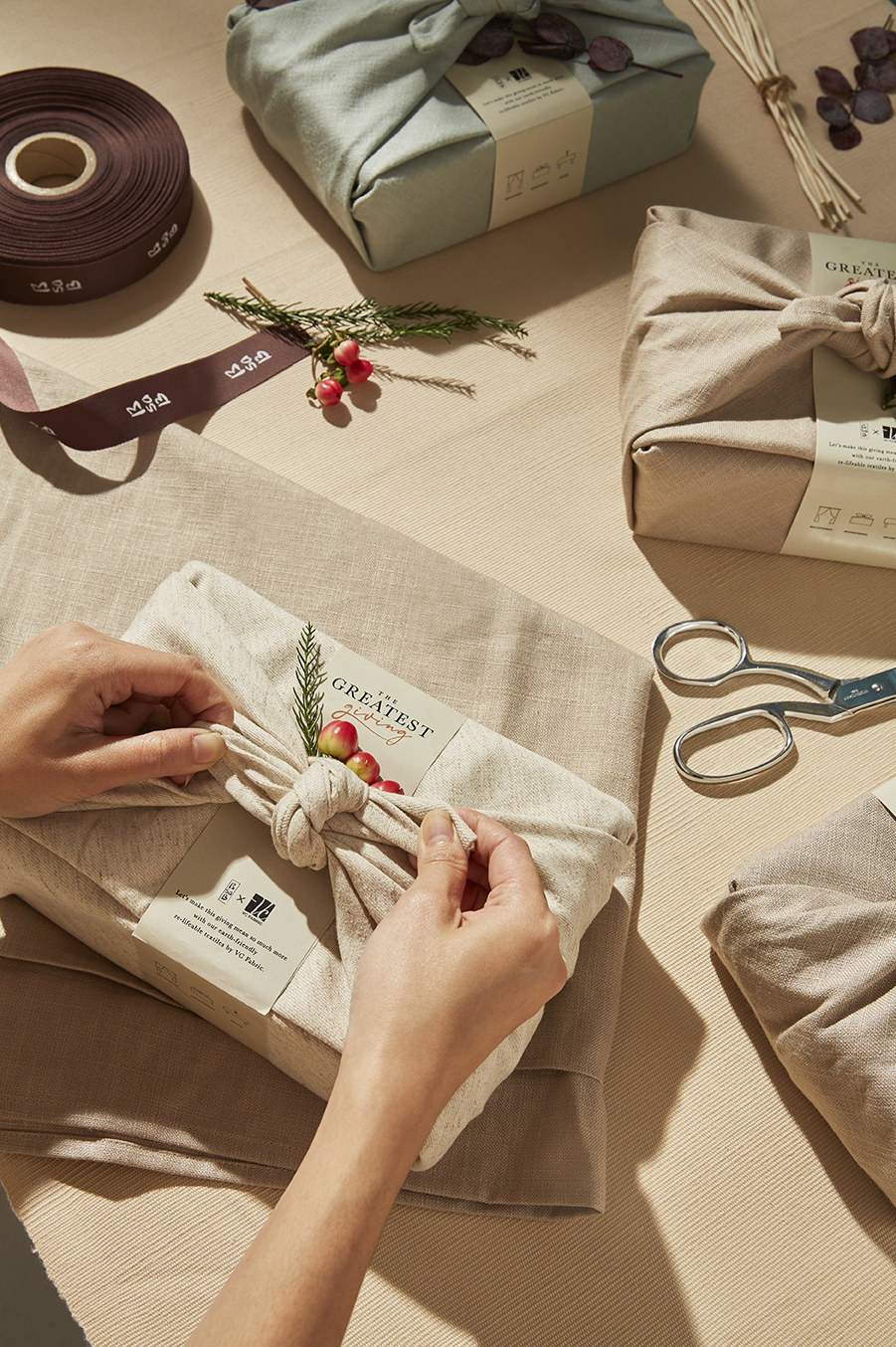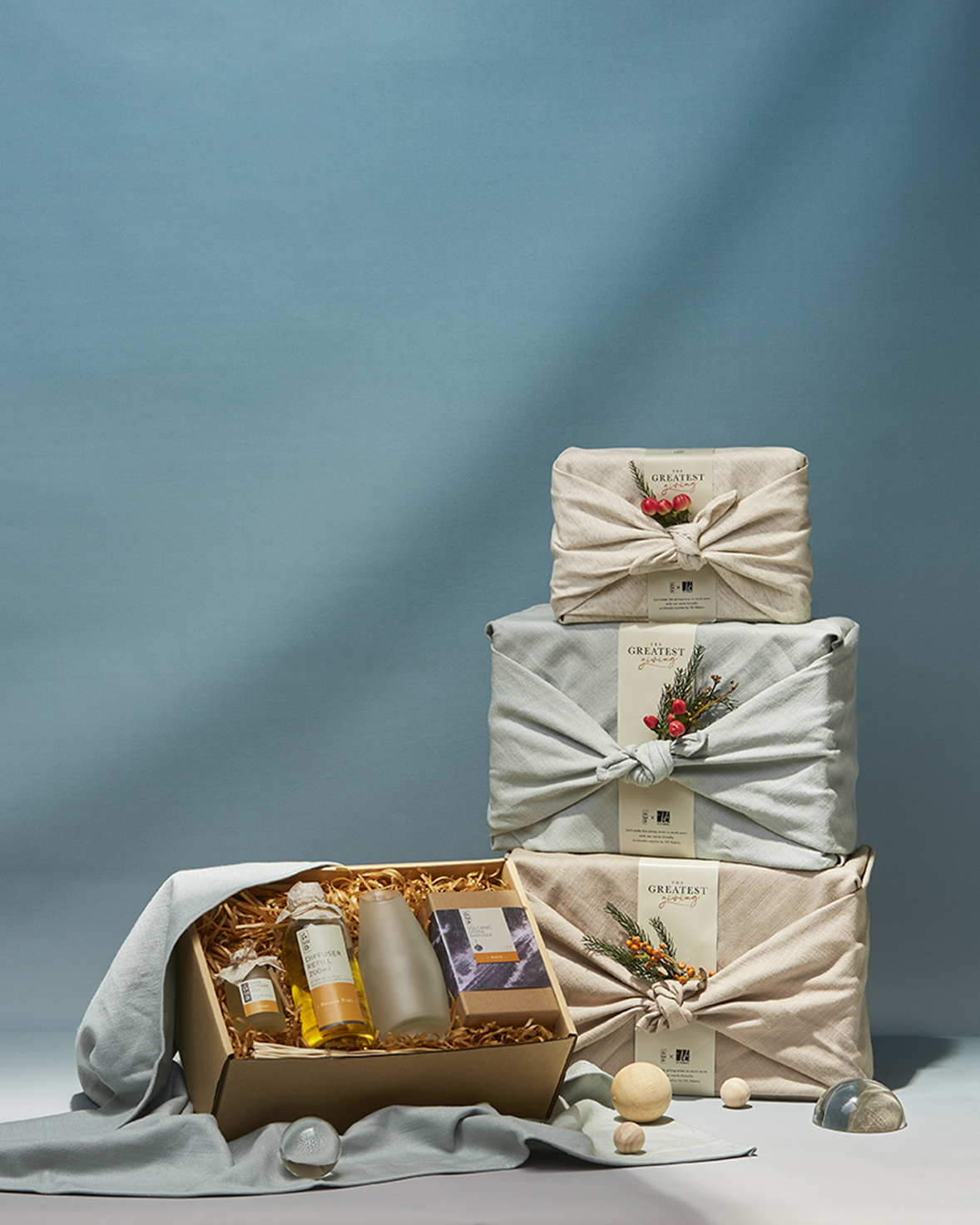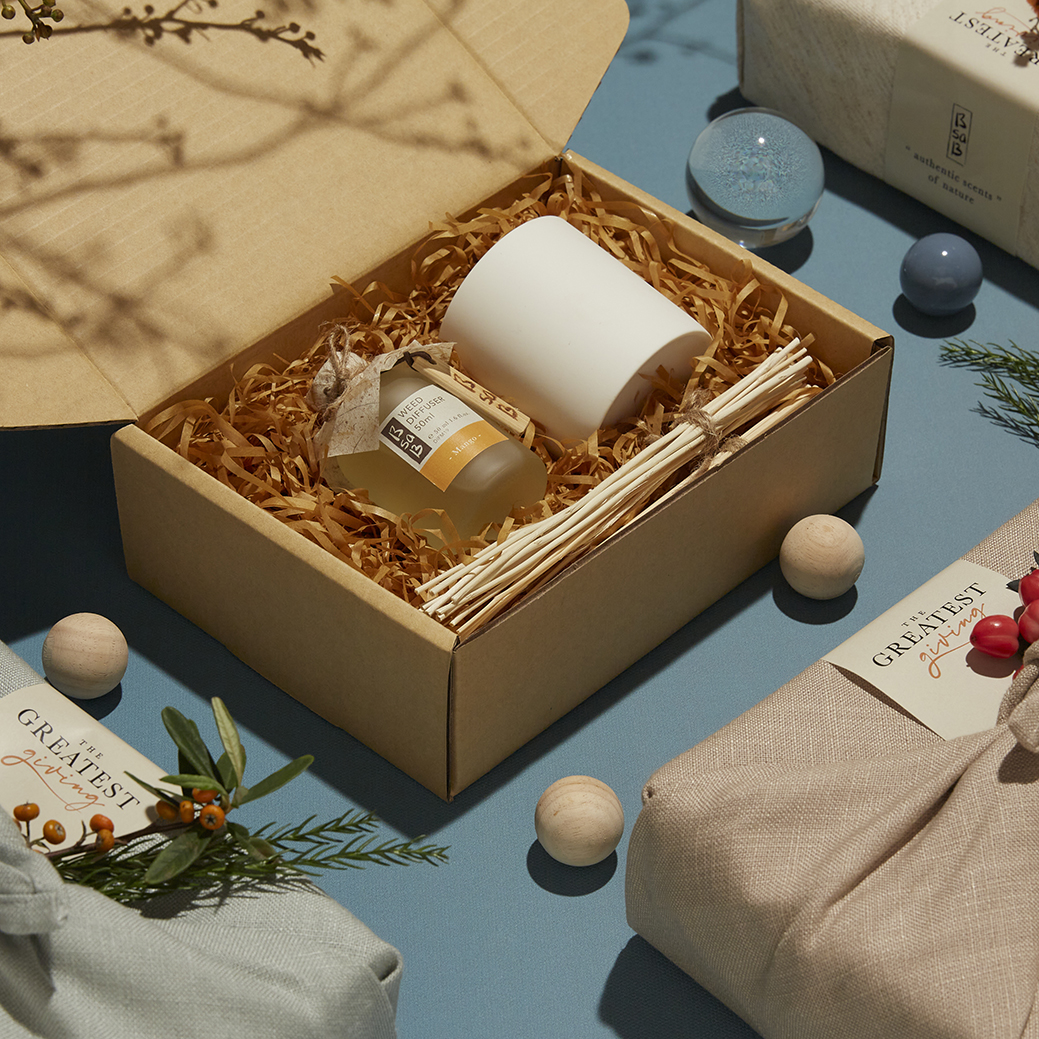 ผ่านการออกแบบกลิ่นเครื่องหอมที่เป็นธรรมชาติ รวมถึงการออกแบบบรรจุภัณฑ์ที่รบกวนความเป็นธรรมชาติน้อยที่สุด ภายใต้ชื่อชุดของขวัญ ‘BsaB Holiday 2021 : The Greatest Giving’ ซึ่งนอกจากฟังก์ชันที่ตอบโจทย์การใช้งานแล้วนั้น ยังสร้างความประทับใจแก่ผู้รับตั้งแต่แรกเห็นด้วยไอเดียการต่อยอดนำสิ่งของเหลือใช้กลับมาดีไซน์เป็นของขวัญที่ทรงคุณค่าอย่างการ ‘Reusable Gift Wrapping Fabric’ ที่นำเศษปลายผ้าม่าน 30,000 หลา ที่เหลือจากการทำผ้าม่านและเฟอร์นิเจอร์ของแบรนด์ VC Fabric มาสร้างสรรค์ในรูปแบบผ้าห่อกล่องของขวัญ 3 ขนาดของ BsaB เพื่อให้คนรับได้ใช้ประโยชน์จากชุดของขวัญนี้อย่างเต็มที่ ทั้ง Gift Set หอม ๆ ด้านใน แถมยังนำผ้าไปใช้งานต่อได้อีกด้วย (ทุกเซ็ตสามารถคละกลิ่นได้ โดยเซ็ตของขวัญจะประกอบด้วยกล่องของขวัญและผ้าห่อของขวัญ และทางแบรนด์ขอสงวนสิทธิ์ในการเลือกลายผ้า)