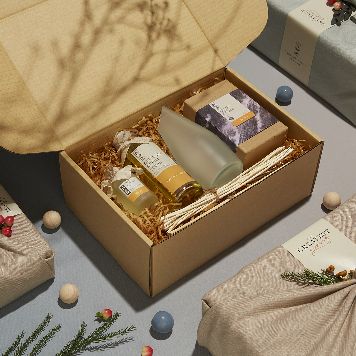 และ Holiday Set Size L (3,050 บาท) เซ็ตของขวัญเครื่องหอมขนาดใหญ่ ที่สามารถเลือกกลิ่นโปรดได้หลากหลายแบบ เพื่อสร้างบรรยากาศดี ๆ ภายในบ้านตลอดทั้งปี ภายในเซ็ตประกอบด้วย Diffuser ขนาด 200 ml., Diffuser ขนาด 50 ml. และ Volcanic Sone